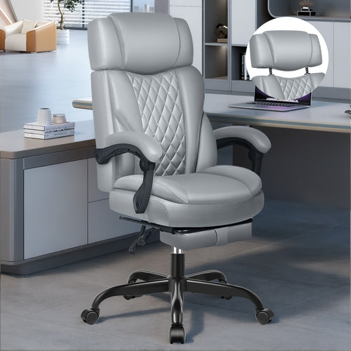 Big and Tall Office Chair, Executive Desk Chair with Footrest, Ergonomic Gaming Chairs with Adjustable Headrest and Tilt Angle, for Office and Home, Gray